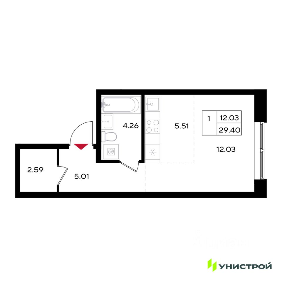 29 м² · Этаж 12 из 25
