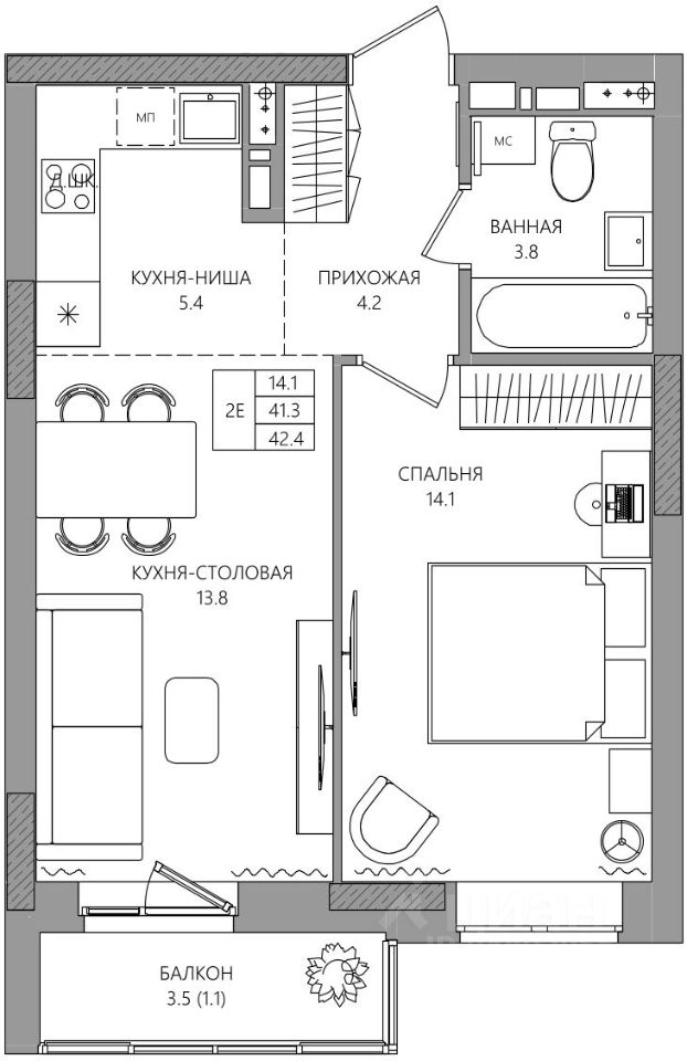 42 м² · Этаж 5 из 8