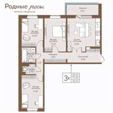 Продаётся 3-комнатная квартира в строящемся доме (Академическая, 9), срок сдачи: III-кв. 2027, общей площадью 74.8 кв.м., на 7 этаже. Новый жилой комплекс ''Родные росы'' от Специализированного застройщика ''Финпроект'' расположен в с. Фролы по ул. Академическая.