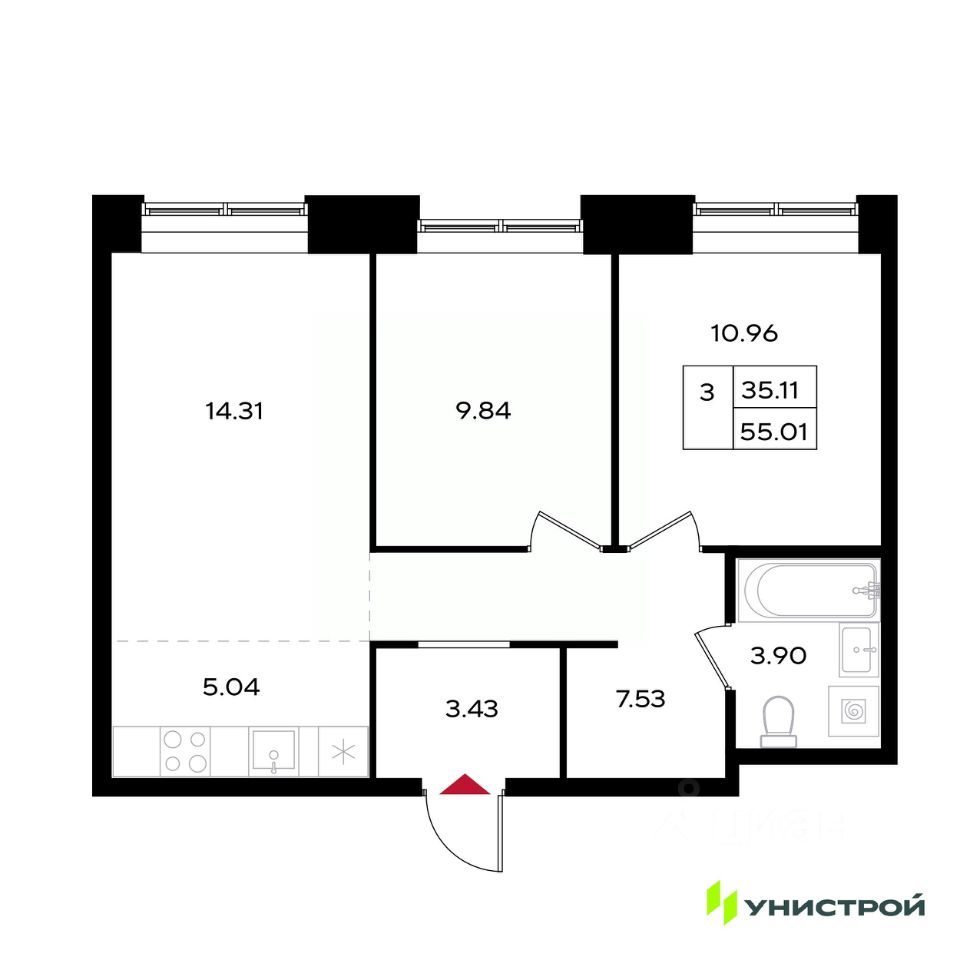 55 м² · Этаж 11 из 25