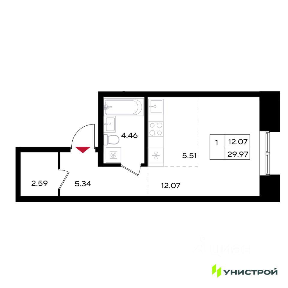 29 м² · Этаж 12 из 25