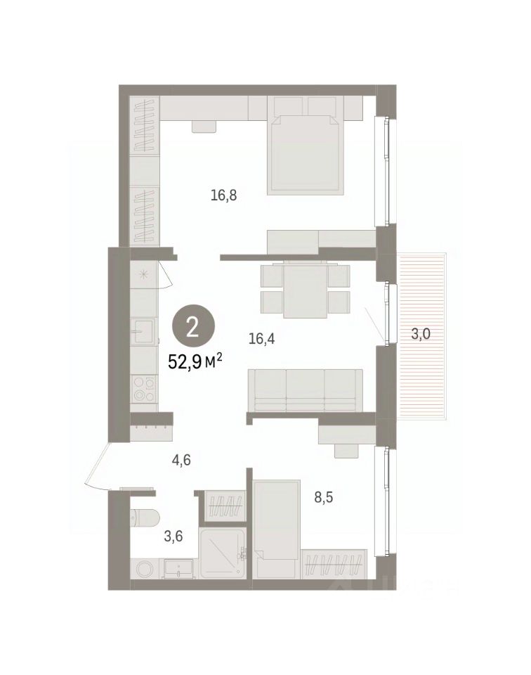 52 м² · Этаж 9 из 16