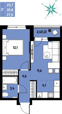 Продаётся 1-комнатная квартира в строящемся доме (Улановой, 5), срок сдачи: III-кв. 2027, общей площадью 29.5 кв.м., на 3 этаже. Новый жилой комплекс ''Клубный пригород ''МЫ'' от застройщика ''Девелопмент-ЮГ'' расположен по адресу д. Кондратово, пр-т Дягилева, 4.
