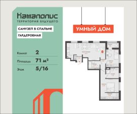 В новом жилом комплексе комфорт+ класса ''Камаполис'', расположенном на берегу реки Камы, продается 2-комнатная квартира площадью 71.00 кв. м. Квартира находится в 5 (1 этап) доме. Девелопер проекта - ''Железно''.Транспортная доступность• Трамвайная остановка всего в 3 минутах пешком,• 15 минут ходьбы до вокзала Пермь-2,• 10 минут на машине до центра города.Продуманный архитектурный проектКамаполис - это жизнь в соразмерной среде, спроектированной известными архитекторами. Жилые этажи ''Камаполиса'' строят из кирпича и по монолитной технологии, стены обладают высокой устойчивостью к нагрузкам, огнестойкостью, хорошей шумоизоляцией. Такие дома отлично сохраняют первоначальный внешний вид и радуют жителей долгие годы.Концептуальные лоббиКонцепция проекта продолжается интерьером лобби. Здесь преобладают естественные оттенки и текстуры, а мебель выполнена из экологичных материалов. Для удобства жителей созданы собственные колясочные и велосипедные, а для заботы о домашних любимцах предусмотрена лапомойка.Благоустройство Новый центр притяжения - всесезонный сквер, выполненный в тематике и стилистике пермского периода. Прогулочные зоны, игровые и спортивные площадки, релакс-зоны и места для творчества - все эти мультифункциональные пространства формируют сценарии для любого досуга. Любители особой приватности оценят соседские террасы - это специальные пространства для жителей, расположенные прямо на стилобате паркинга. Любуйтесь на реку, принимайте участие в совместных мероприятиях с соседями, с удовольствием работайте на свежем воздухе и приятно проводите время с близкими. Дополнительные преимущества• Собственный детский сад на 320 мест,• Стрит-ритейл с магазинами и кафе прямо на территории комплекса,• Управление домом через собственное мобильное приложение ''Мажордом'',• 3 разных вида отделки на выбор покупателей.