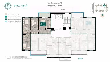 Продаётся 2-комнатная квартира в строящемся доме (корпус 2 (Кавказская, 13к2)), срок сдачи: II-кв. 2028, общей площадью 59.05 кв.м., на 3 этаже. Новый жилой комплекс ''Жилой квартал ''Видный'' от Специализированного застройщика ''СПК-Кавказская'' расположен по адресу: г. Пермь, ул. Кавказская, 13.