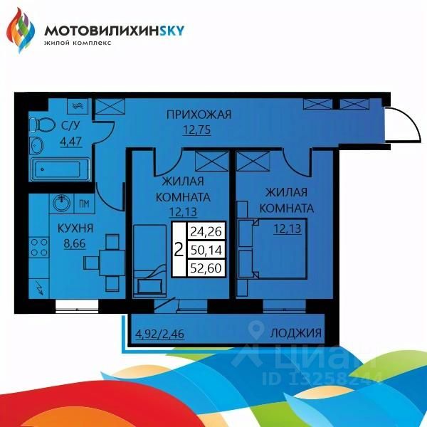 Продаётся 2-комнатная квартира в строящемся доме (Гашкова, 55 (позиция 12)), срок сдачи: I-кв. 2027, общей площадью 52.6 кв.м., на 3 этаже. Глобальный проект новостроек на Вышке-2 в Перми стартовал в 2012 году. Общая площадь застраиваемой территории - 21 га, объем строительства - 187 000 квадратных метров. Счастливыми новоселами ЖК ''МотовилихинSKY'' стали около 1 500 семей! Новостройки в Мотовилихинском районе от СтройПанельКомплект порадуют и Вас широким выбором планировок на любой вкус. Достоинства ''МотовилихинSKY'': В шаговой доступности: гимназия 7, кадетский корпус, детский сад 415 (с прикреплением по прописке в ЖК ''МотовилихинSKY''). Новая школа на 1500 мест и детксий сад на 280 мест запланированы к строительству в в ЖК ''МотовилихинSKY''. Остановочный пункт с маршрутами в любой конец города. В самом комплексе уже расположены магазины: Монетка, Семья, НормаН, а также магазины формата ''у дома''. Просторные дворы без машин. Просторные парковки места хватит всем! Собственная котельная под микрорайон. Более 40 вариантов планировочных решений квартиры. Полная строительная отделка без дополнительных вложений ''заезжай-живи''.