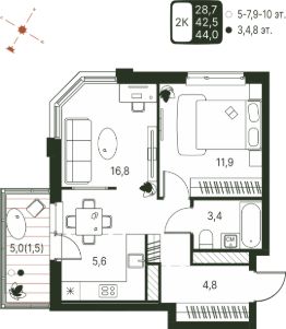 Предлагаeм двухкомнатную квартиру с хорошим косметическим ремонтом мебелью и бытовой техникой в дoме ''Серая панель''!ПРЕИМУЩЕСТВА КВАРТИРЫ:- общая площадь квартиры 46,2 м2+широкая лоджия,- 7 этаж, окна на юго-западную сторону, что создает приятный микроклимат в квартире,- выполнен качественный косметический ремонт: установлены стеклопакеты, белые потолки из гипсокартона-окрашены, стены выровнены, поклеены обои в спокойных тонах, на полу ламинат, заменена электрика и сделан многоуровневый свет, поменяны трубы отопления и все батареи, установлены фильтры водоснабжения на горячую и холодную воду, также фильтры на питьевую воду, ванная и с/у в кафеле, смонтирован теплый пол, кондиционер, установлена надежная входная дверь- встроенные шкафы, кухонный гарнитур и бытовая техника: варочная поверхность, духовой шкаф - остаются новым собственникам.ПРЕИМУЩЕСТВА ДОМА:- панельный дом 1981 года постройки,- приличные соседи,- тихий двор,- детская площадка,- наличие парковочных мест.ПРЕИМУЩЕСТВА ИНФРАСТРУКТУРЫ:- школа Экошкола,- дет. садик ''Динамика'', 369,- детская поликлиника,- торговые, центры, магазины, аптеки, кафе, остановки общ. транспорта.Документы в порядке, 1 взрослый собственник, обременения и перепланировки отсутствуют.