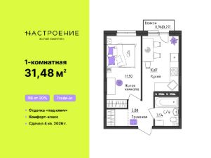 Продается 1- комнатная квартира 52Скидка 5% на квартиру с отделкой*.Квартира от 3 млн.руб. + кухня в подарок**. Жилой комплекс Настроение — это три комфортных 4-этажных дома с эргономичными планировками и современными инженерными решениями. Настоящая находка для практичных людей! Покупая квартиру в ЖК Настроение, вы платите только за своё жильё без переплаты за близость к центру.Дом из монолитного железобетонного каркаса, с отделкой из декоративной штукатурки. Современный архитектурный образ, лаконичные чёткие формы и французские балконы делают фасад стильным и гармоничным. Стильные подъезды выполнены по индивидуальному дизайну. Колясочная предусмотрена в 4 подъезде. Домофоны расположены в тёплых тамбурах. Витражное остекление входной группы.Мульти-двор для отдыха взрослых и детей. Предусмотрены площадки для игр и занятий спортом. Безопасность обеспечена ограждением и разноуровневым освещением придомовой территории. Подъезды оснащены системой видеонаблюдения. Здесь безопасно и комфортно даже в тёмное время суток.Своя газовая котельная позволяет сэкономить до 30% на оплате услуг за отопление и горячей воды. Жители дома не зависят от централизованного отопления и могут сами решить, когда включить обогрев.Современные инженерные решения: • Выполнена контурная шумоизоляция. Установлено малошумное насосное и вентиляционное оборудование. • Окна с 2-камерными стеклопакетами, с шумозащитными клапанами вентиляции. • Панельные радиаторы с терморегуляторами. Горизонтальная разводка отопления.• Система пожарной сигнализации во всех комнатах, кроме ванных и санузлов.Качественная отделка ''под ключ'': • Входная металлическая дверь• Ламинат 32 класса с плинтусом• Виниловые обои• Межкомнатные двери из эко-шпона• Белый матовый натяжной потолок• Электротехническая разводка с установленной электрофурнитурой• Телекоммуникационная разводка до квартиры (ТВ, интернет)В санузлах:• Керамическая плитка на полу• Керамическая плитка на стенах в мокрой зоне• Матовый натяжной потолок• Сантехника: ванна, унитаз, раковина, смесители. Полотенцесушитель. Инфраструктура сочетает в себе удобство городской жизни и близость к природным зонам. В шаговой доступности расположены продуктовые магазины. На первых этажах ЖК предусмотрено размещение коммерческих помещений. Дет. сады, школы, мед. учреждения расположены в 4-10 минутах транспортной доступности. Стадион Молния, пляж КамГЭС создают условия для отдыха и активного времяпрепровождения, а остановки автобусов обеспечивают транспортную связанность. В пяти минутах ходьбы от дома можно гулять по лесу, отдыхать, наслаждаясь свежим воздухом. Зимой здесь можно кататься на лыжах.ЖК Настроение пространство, где каждый найдёт своё вдохновение, а уют и комфорт станут неотъемлемой частью повседневной жизни. Здесь будет хорошо тем, кто желает наслаждаться гармоничной жизнью в современном комфортном доме среди живописных пейзажей.______________________________*Реклама. Застройщик ООО СЗ ''КЕЛШ'', ИНН 5902050200