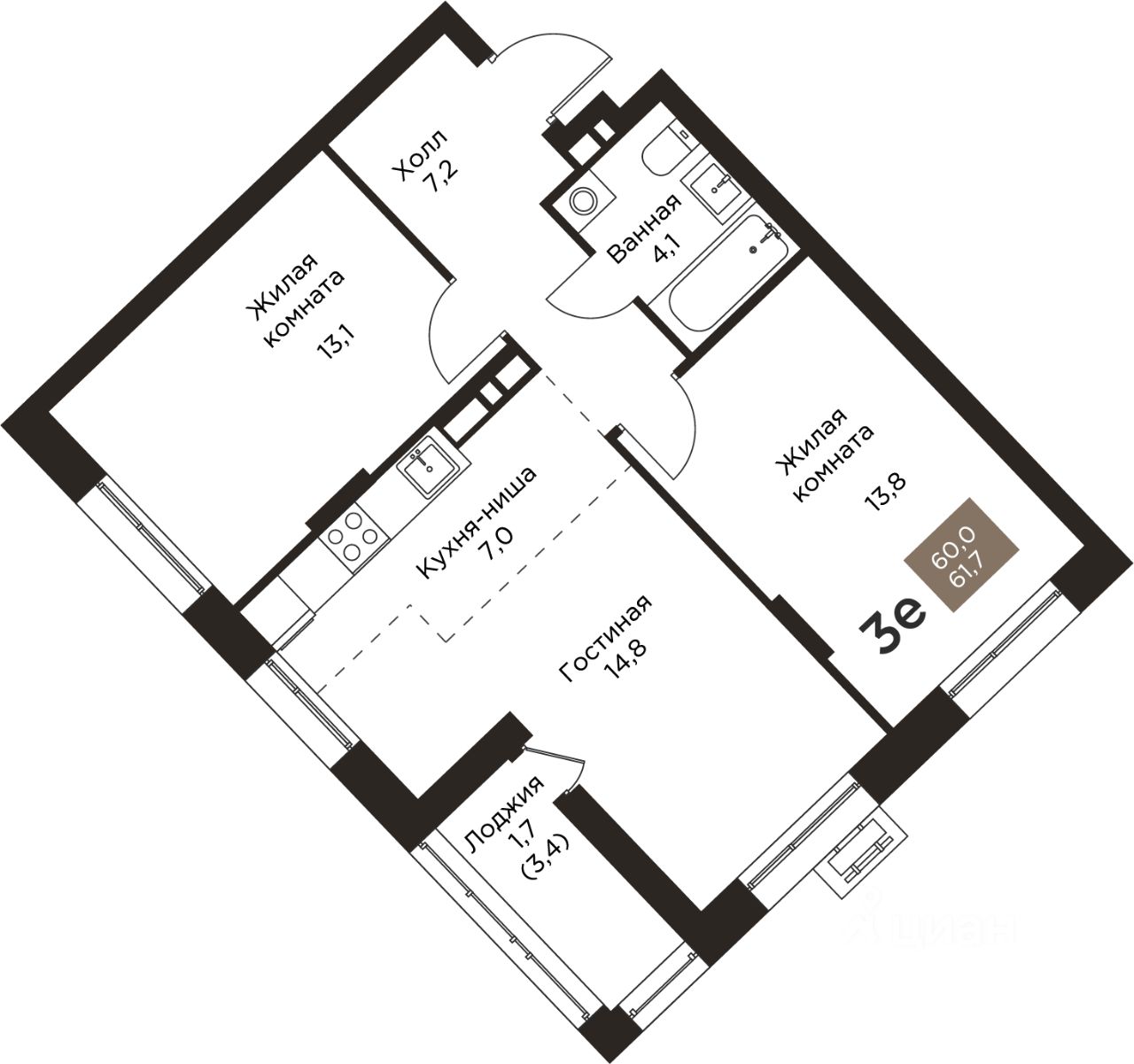 61 м² · Этаж 1 из 4
