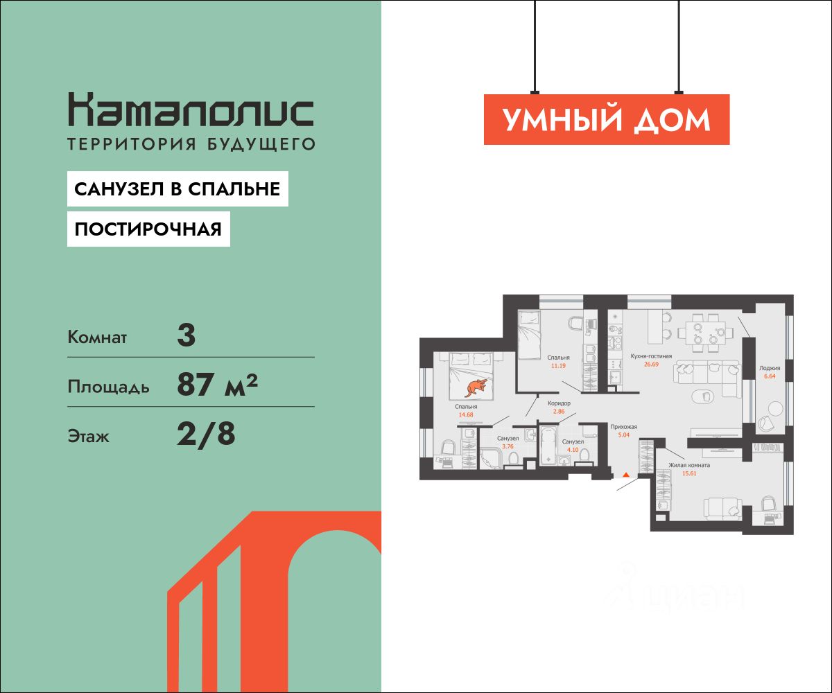 Пространство, которое растет вместе с вашей семьей Квартира с 2 спальнями и кухней-столовой созданная для семей, которым важно удобство в деталях: - 2 спальни своё пространство для каждого или кабинет в одной из них, если вам комфортно работать из дома - гостиная c выходом на лоджию центр семейных встреч и уютных ужинов - высокие потолки (3 м) и большие окна много воздуха, света и свободы - 2 санузла утренние сборы без очередей. В одном ванна, чтобы расслабляться после насыщенного дня - грязная зона у входа защита от уличной грязи, особенно зимой и в межсезонье - ниша под шкаф в холле место для верхней одежды, обуви и детских вещей - корзины под кондиционеры и приточные клапаны вентиляции о собственная газовая котельная для комфортного климата в любое время года Квартал 745 это пространство, где удобно жить и расти. Безопасный двор без машин, соседский центр, двухуровневый паркинг и современные коммерческие пространства все, что нужно семье для комфорта.