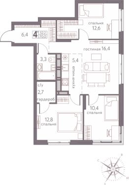 Продаётся 3-комнатная квартира в строящемся доме (Серебристая, 5), срок сдачи: I-кв. 2026, общей площадью 74.8 кв.м., на 15 этаже. Теплые кварталы ''Погода'' — это новый грандиозный проект от создателя Спортивного микрорайона ''Ива'', федерального застройщика ''Девелопмент-Юг'' .