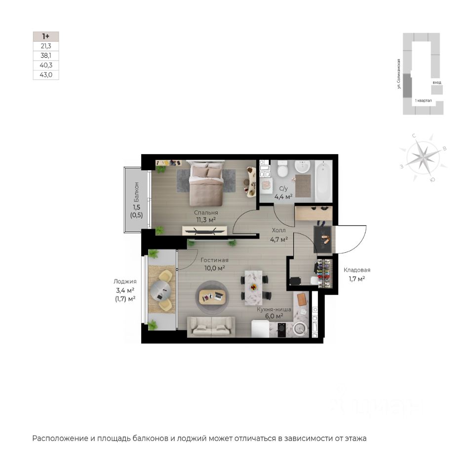 Просторная прихожая с местом под систему хранения-Мастер-спальня с гардеробной-Два сан. узла-Просторная гостиная-кухня с отдельной кладовой-Зона под кондиционер-Все комнаты изолированные •••••••••••••••••• Клубный дом ''SOBRANIE'' предлагает квартиры, каждая из которых оснащена звукоизоляционной подложкой, а также технология полусухой стяжки по монолитной железобетонной плите обеспечивают дополнительную защиту от шума. В доме реализована лучевая разводка отопления, что решает проблему видимых стояков отопления внутри вашего жилища. А качественные современные радиаторы Royal обеспечивают отличный теплообмен. При остеклении будут использованы мультифункциональные двухкамерные стеклопакеты. Квартиры имеют увеличенную площадь и качественные межквартирные (210 мм) и межкомнатные (90 мм) перегородки из керамзитобетонных блоков, что обеспечивает высокий уровень шумоизоляции и свободу для реализации интерьерных решений. •••••••••••••••••• Срок сдачи: 1 квартал 2026 г. •••••••••••••••••• Успейте забронировать свою квартиру!