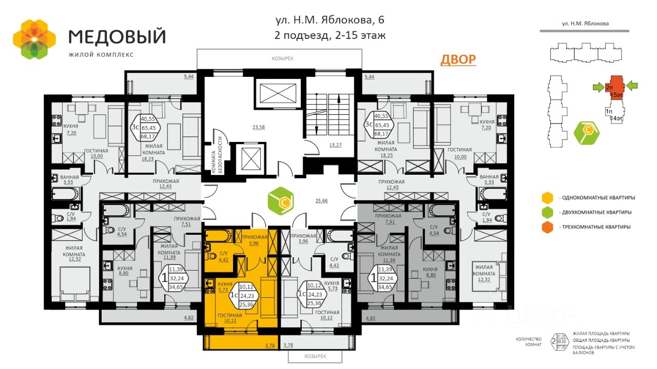68 м² · Этаж 6 из 15