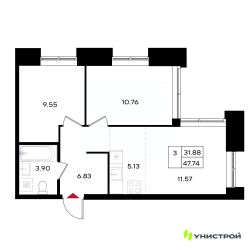 54 м2