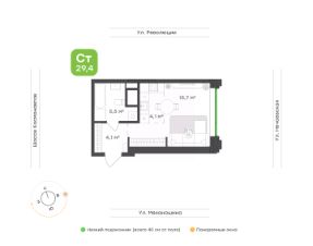 Студия 29 м² — идеальный старт для самостоятельной жизни или инвестиции. Грамотная планировка с нишами под шкаф-купе и кухонный гарнитур — легко зонировать пространство и избежать визуального шума,Просторная ванная 5,5 м² — комфорт, которого редко ждёшь от студии,В прихожей предусмотрена ниша под шкаф — порядок с первых шагов в квартиру,Большое окно с низким подоконником (всего 40 см от пола) наполняет квартиру светом и делают вид частью интерьера, Потолки 2,7 м — воздух, объем и ощущение свободы.