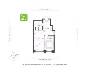 Пространство для комфортной жизниКухня-гостиная 18 м² — уютное сердце квартиры для отдыха и приёма гостей,Несколько ниш для хранения в коридоре — всё под рукой, без визуального шума,Просторная ванная 5,6 м² — комфорт и свобода движений,Большие окна с низким подоконником (всего 40 см от пола) наполняют интерьер светом и создают ощущение простора,Потолки 2,7 м — ощущение воздуха и архитектурного объёма.