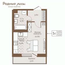 Продаётся 1-комнатная квартира в строящемся доме (Степная, 2), срок сдачи: IV-кв. 2027, общей площадью 24.66 кв.м., на 4 этаже. Новый жилой комплекс ''Родные росы'' от Специализированного застройщика ''Финпроект'' расположен в с. Фролы по ул. Академическая.