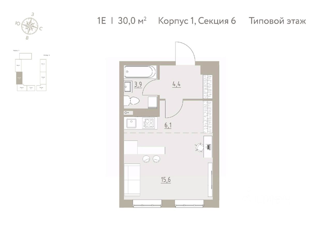 30 м² · Этаж 4 из 4