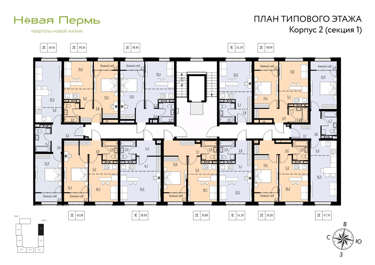 Продаётся 1-комнатная квартира в строящемся доме (Секции 1.1, 1.2), срок сдачи: IV-кв. 2027, общей площадью 26 кв.м., на 3 этаже. Сезоны - это новый современный жилой квартал в 10-ти минутах от Черняевского леса. Вдохновившись близостью территории к главному ''зеленому оазису'' Перми, мы взяли природную концепцию за основу нашего проекта.