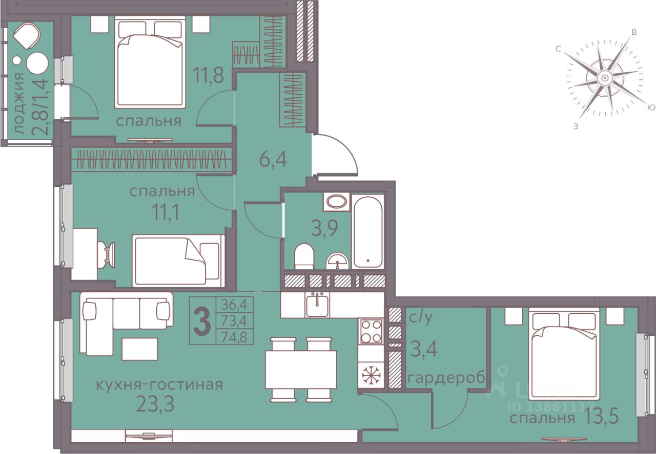 74 м² · Этаж 9 из 22