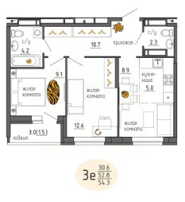 54 м2