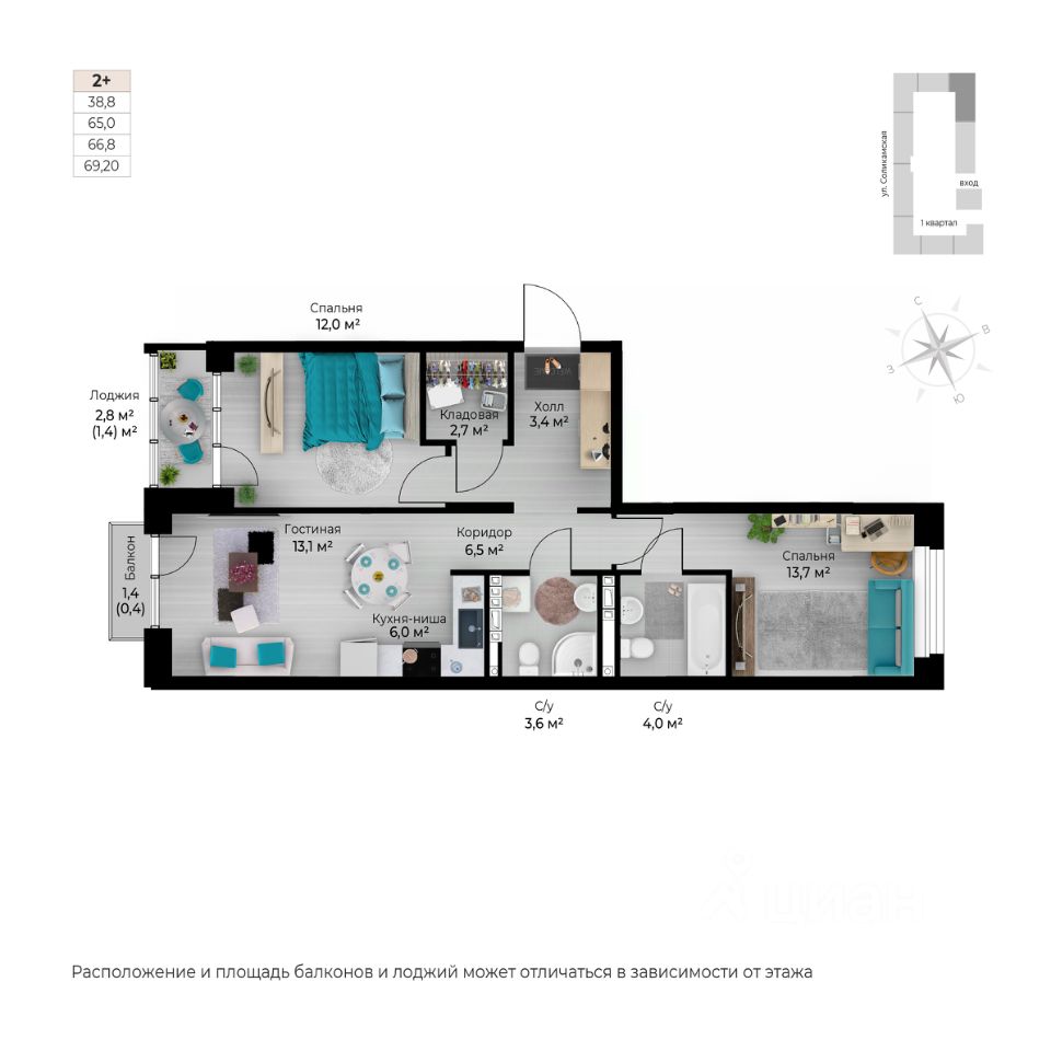 Продаётся 3-комнатная квартира в строящемся доме (I этап), срок сдачи: IV-кв. 2026, общей площадью 59.7 кв.м., на 6 этаже. Новый жилой комплекс ''Ветлан'' от застройщика ''Пермит'' расположен в г. Пермь на ул. Ивана Франко.