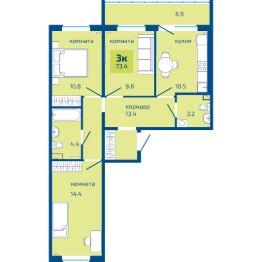 2-к, Целинная, 1 корп. 1 Показать на карте