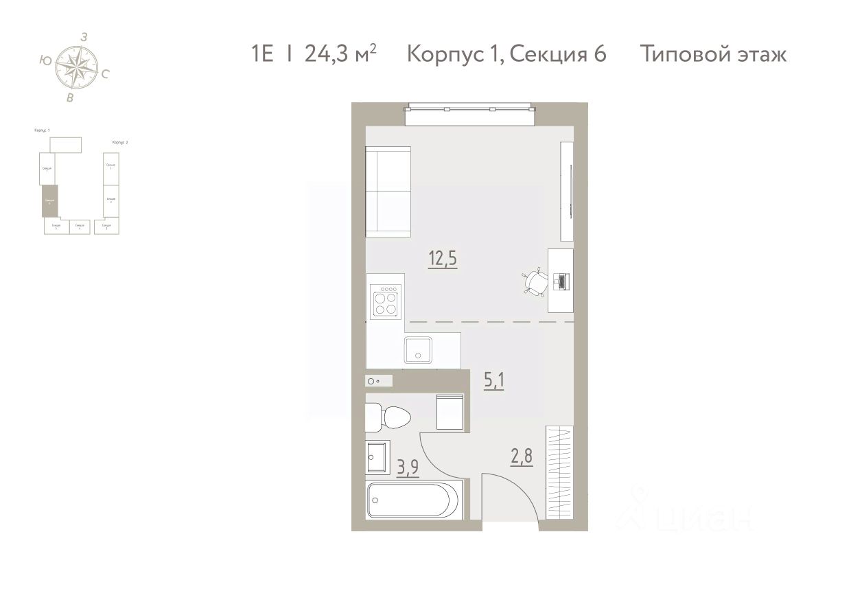 24 м² · Этаж 1 из 4