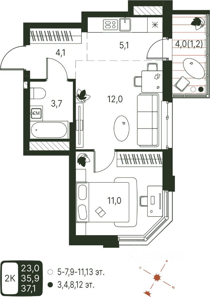 37 м² · Этаж 11 из 20