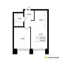 Просторная однокомнатная квартира. Кухня-гостиная 20,3 м² — светлое и открытое пространство для жизни и встреч,Спальня с собственной гардеробной — приватность и порядок без лишней мебели,Просторная ванная 6,1 м² — максимум удобства и комфорта, Ниша под шкаф-купе в прихожей — продуманное хранение с первых шагов,Большие окна с низким подоконником (всего 40 см от пола), наполняющие квартиру светом и лёгкостью,Потолки 2,7 м — архитектурный объём и свобода в интерьере.