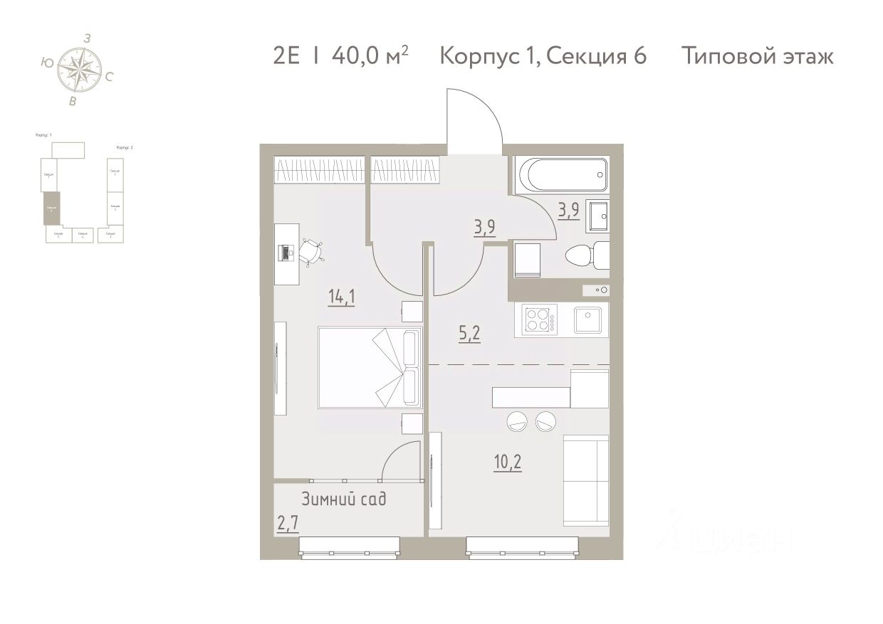 40 м² · Этаж 4 из 4