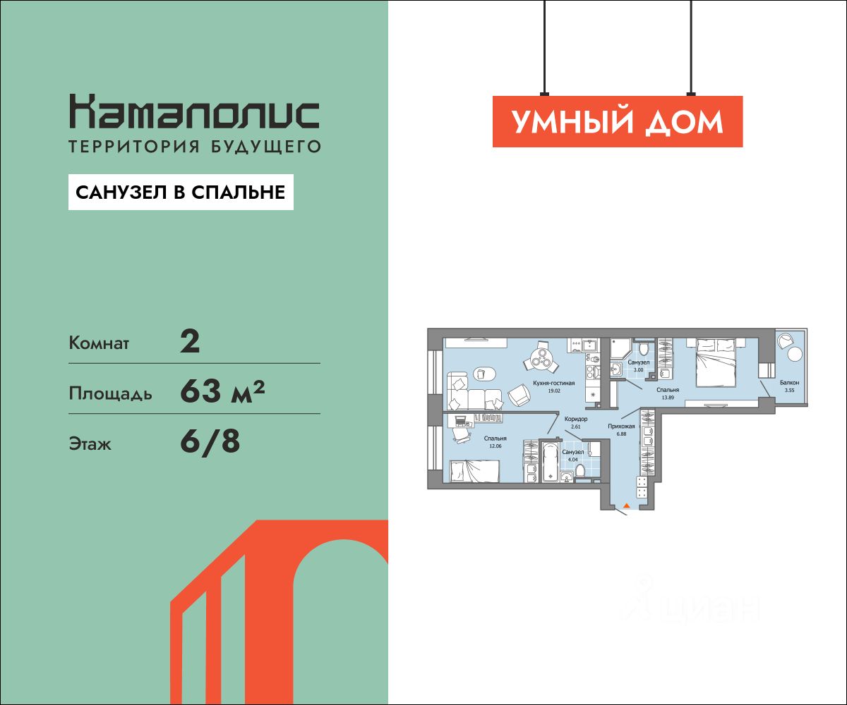 63 м² · Этаж 6 из 8