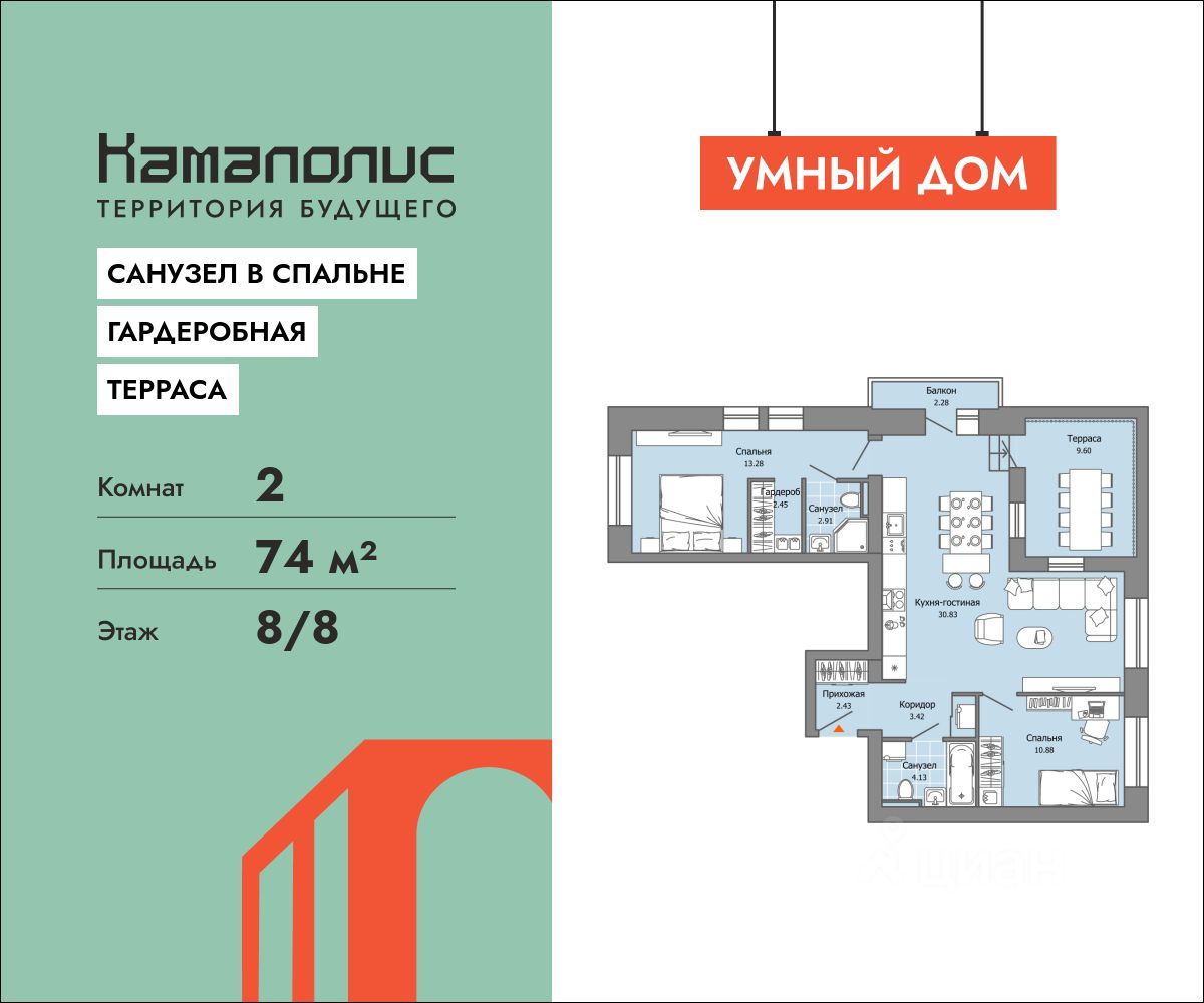 74 м² · Этаж 8 из 8