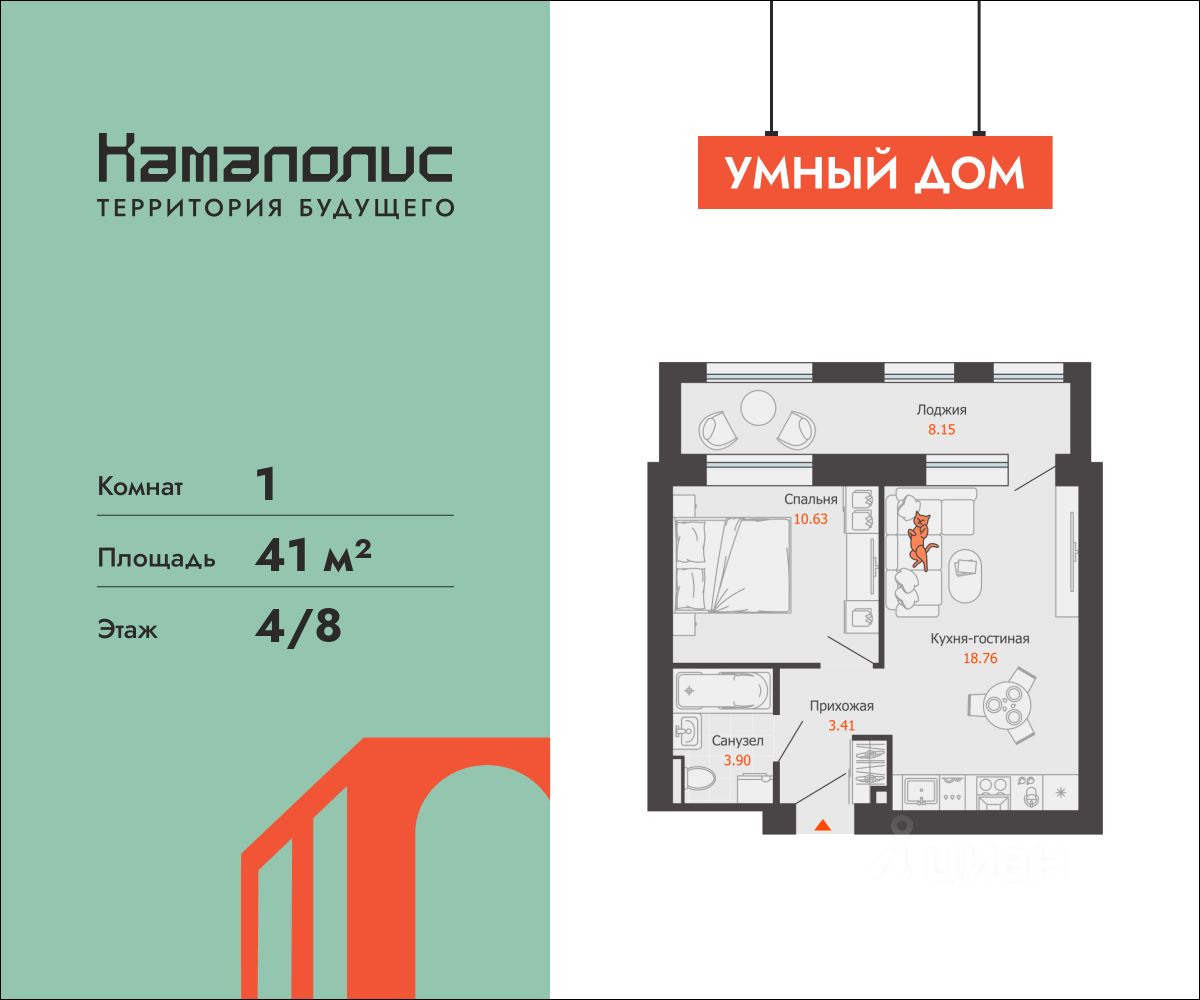 41 м² · Этаж 4 из 8