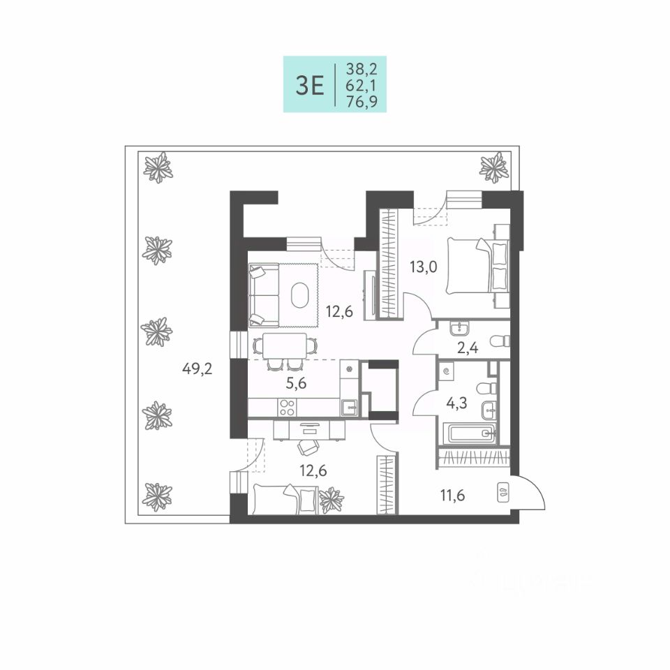 57 м² · Этаж 3 из 9