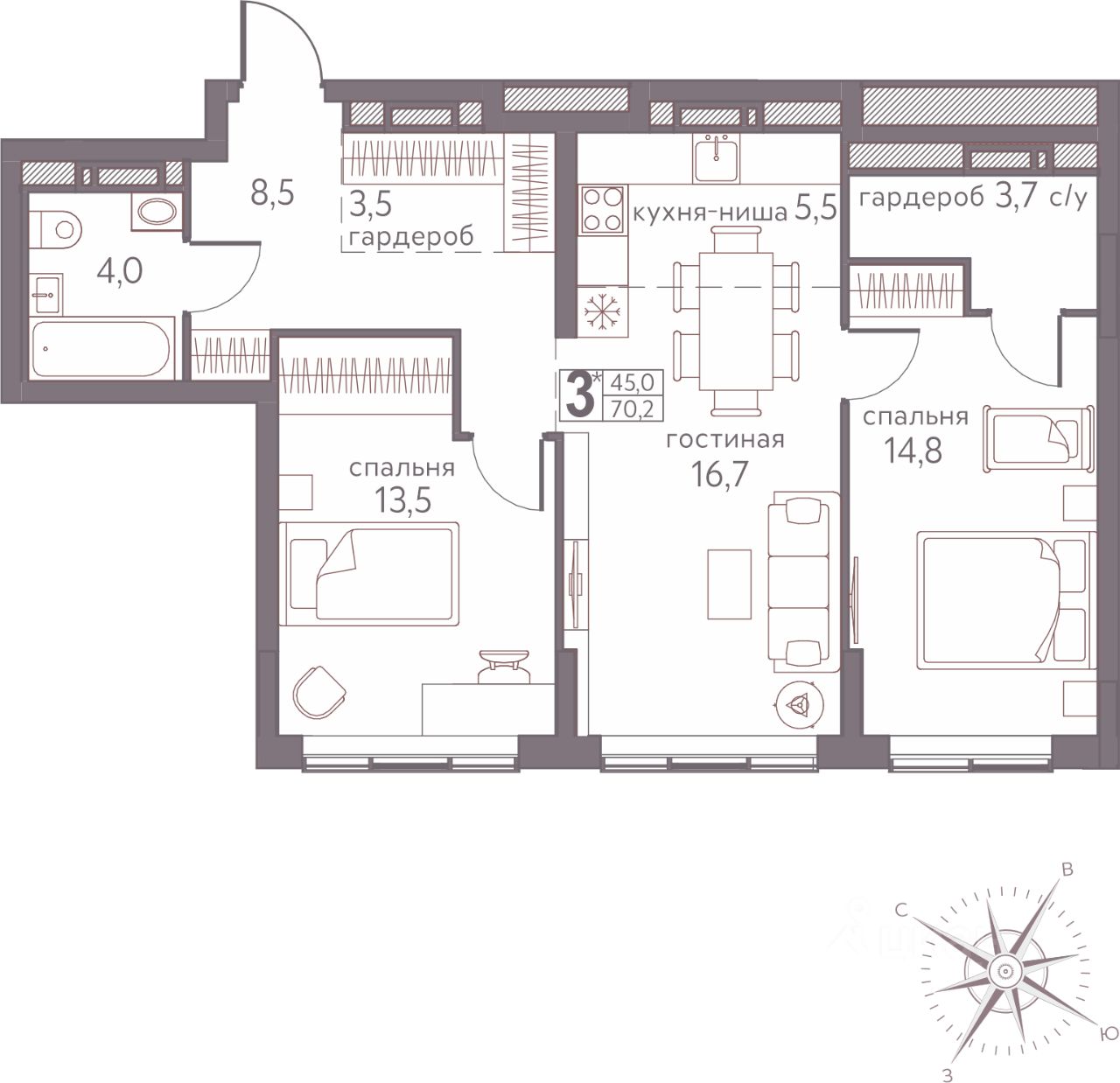 57 м² · Этаж 3 из 7