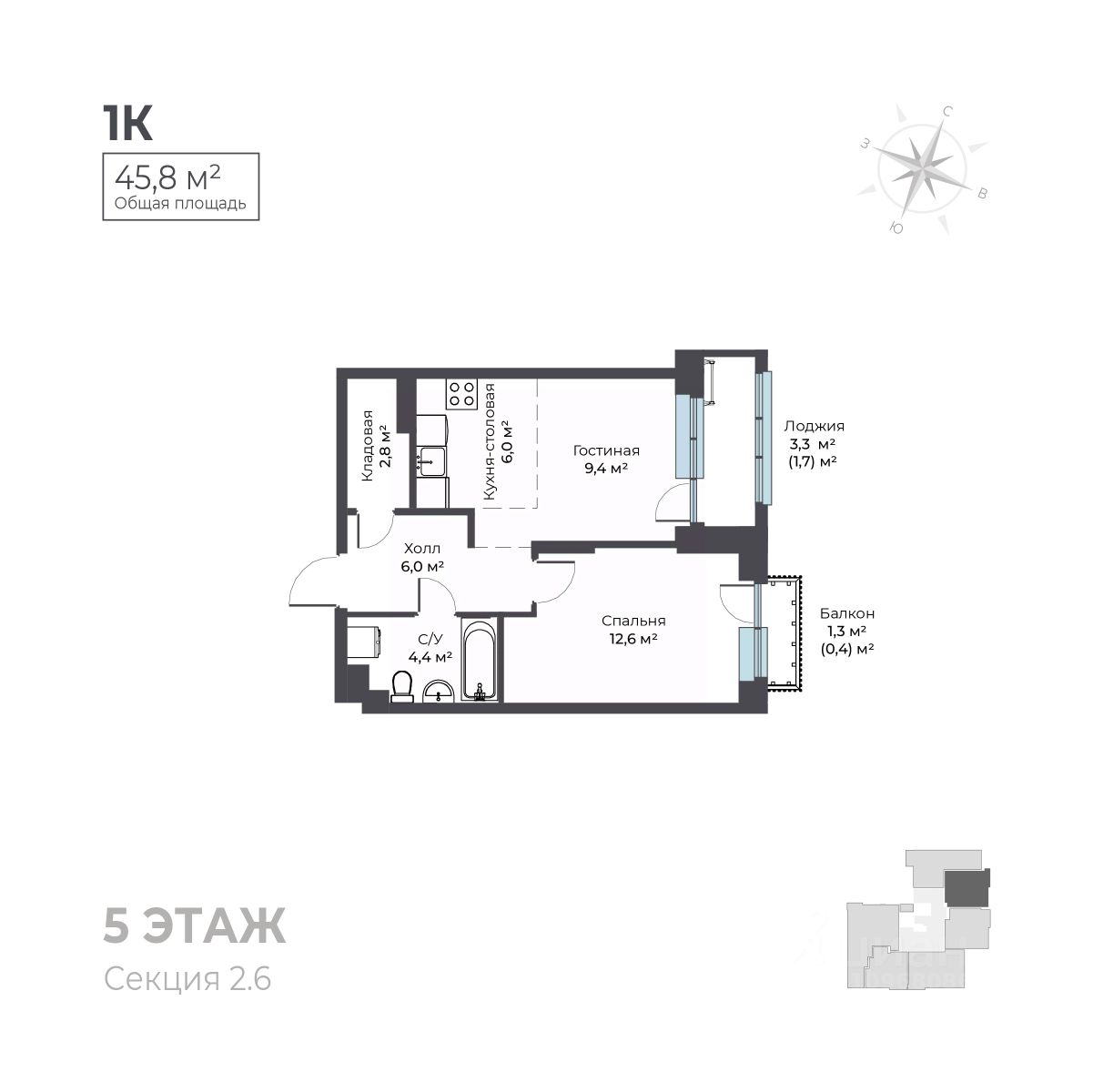 45 м² · Этаж 5 из 7