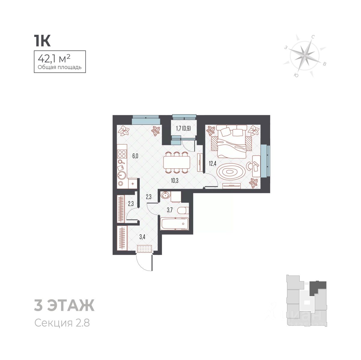 42 м² · Этаж 3 из 7