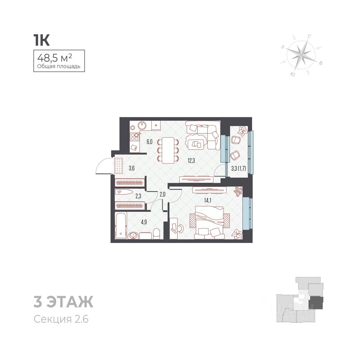 49 м² · Этаж 6 из 7