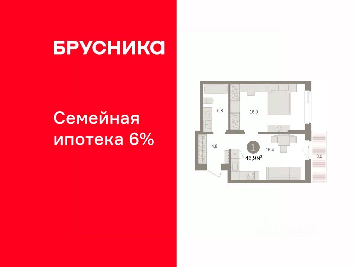 Продается 1-комн. квартира от застройщика с предчистовой отделкой в ЖК ''Квартал ''Юность'''' на 3 этаже. Общая площадь: 46.93 кв.м., жилая: 16.9 кв.м., площадь просторной кухни-гостиной: 16.4 кв.м. Все окна выходят на одну сторону. В квартире один балкон, один совмещенный санузел. Высота потолков 2.7 м. Дом монолитный, многоподъездный, переменной этажности, от 9 до 16 этажей. Квартира находится во 2-й секции высотой 9 этажей в корпусе 2. На этаже 8 квартир. В подъезде 1 пассажирский и 1 грузовой лифт. Окончание строительства - 4 квартал 2027 года. Оформление сделки по договору долевого участия. Квартира с кухней-гостиной и одной спальней в квартале ''Юность''. Особенности планировки: балкон, вид во двор. квартиры в нашей базе: ЮСТ01-Ж3.3.7. Квартал ''Юность'' расположен между улицами Лодыгина и Яблочкова. Обе названы в честь русских электротехников и изобретателей, которые занимались созданием электрических ламп. Это соседство вдохновило нас на метафору, которая легла в основу концепции проекта. В физике есть термин ''суперпозиция'' — наложение нескольких воздействий, приводящее к суммарному эффекту. Именно он лучше всего отражает идею проекта Брусники. ''Юность'' — это совокупность преимуществ в одном пространстве. Узнаваемая архитектура, уютные квартиры, безопасный двор, качественное озеленение — все эти элементы незаменимы и складываются в уникальный качественный продукт. Микрорайон Крохалева сочетает в себе черты делового центра и спокойного семейного квартала. Отсюда можно быстро добраться до всех деловых, транспортных и прогулочных зон Перми. Дорога до центра займёт 10-15 минут на автомобиле. Рядом, в пешей доступности уже есть необходимая социальная и коммерческая инфраструктура. ''Юность'' состоит из двух объёмов: вытянутого корпуса с разноуровневыми секциями и 16-этажной башни. Высота секций от 9 до 11 этажей делает дом комфортным для восприятия. Каркас дома выполнен из монолитного железобетона — это надежная и долговечная конструкция, которая прослужит не менее ста лет. Отделка фасада выполнена в светлой, природной гамме: белый, серо-коричневый и теплый бежевый цвета и выразительные вставки придают дому современный облик. Балконы и террасы на верхних этажах выступают связующими звеньями, они создают плавные переходы между секциями и создают дополнительную визуальную динамику. Уникальная форма участка позволила создать единую систему благоустройства с функциональными зонами: - Внешние пространства: Встречающая площадь с арт-объектом и кафе, рекреационная зона для отдыха и игр, прогулочный бульвар с торговыми павильонами все доступно горожанам. - Закрытый двор: Разделен на зоны для тихого отдыха и активных игр. Детские площадки для разных возрастов, включая экспериментальную для малышей. Родители могут наблюдать за детьми из-под навеса. - Озеленение: До 70% двора займут деревья, кустарники и цветы, высаженные с учетом календаря цветения для круглогодичной эстетики. Проект учитывает биоразнообразие, создавая среду для местной фа