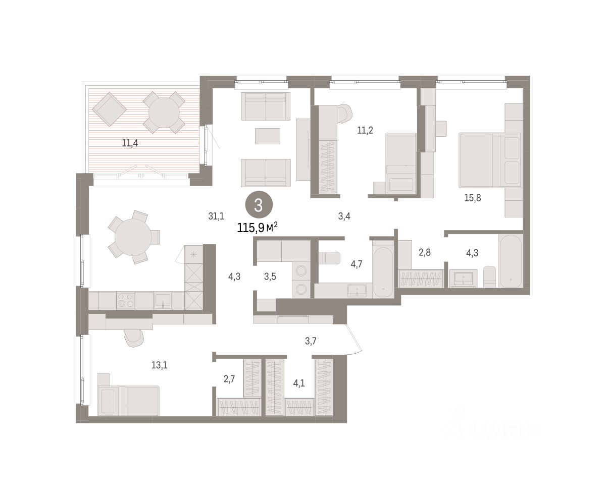 115 м² · Этаж 15 из 16