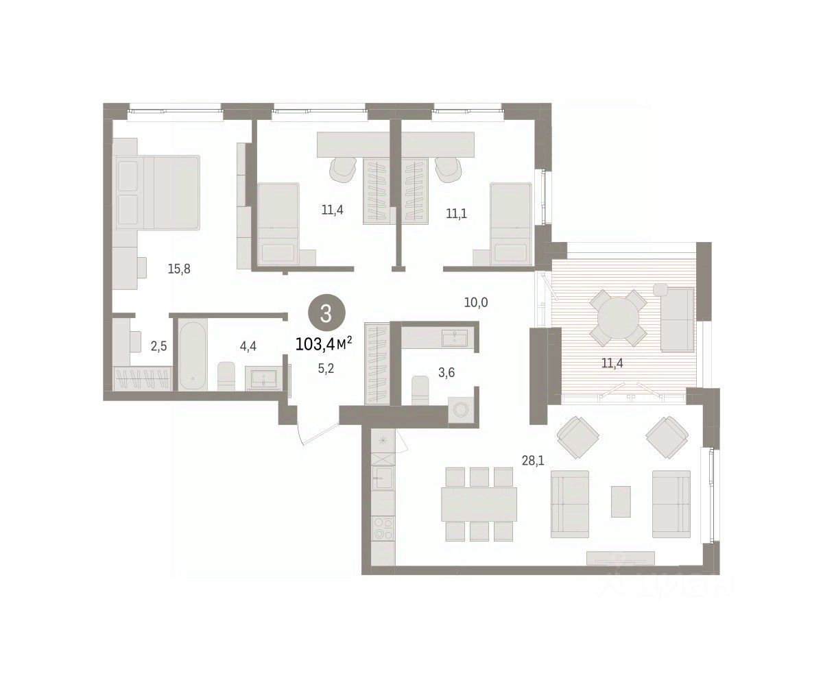 Просторная трехкомнатная квартира с предчистовой отделкой в ЖК ''Квартал ''Юность'''' на 16 этаже. Общая площадь: 103.38 кв.м. Высота потолков 2.7 м. Квартира находится в корпусе 1. Дом монолитный, одноподъездный, высотой 16 этажей. На этаже 8 квартир. В подъезде 1 пассажирский и 1 грузовой лифт. Окончание строительства - 4 квартал 2027 года. Оформление сделки по договору долевого участия. Квартира с кухней-гостиной и тремя спальнями в квартале ''Юность''. Особенности планировки: вид во двор, второй санузел, гардеробная, разнесённые спальни, терраса на крыше. квартиры в нашей базе: ЮСТ01-Ж1.16.2. Квартал ''Юность'' расположен между улицами Лодыгина и Яблочкова. Обе названы в честь русских электротехников и изобретателей, которые занимались созданием электрических ламп. Это соседство вдохновило нас на метафору, которая легла в основу концепции проекта. В физике есть термин ''суперпозиция'' — наложение нескольких воздействий, приводящее к суммарному эффекту. Именно он лучше всего отражает идею проекта Брусники. ''Юность'' — это совокупность преимуществ в одном пространстве. Узнаваемая архитектура, уютные квартиры, безопасный двор, качественное озеленение — все эти элементы незаменимы и складываются в уникальный качественный продукт. Микрорайон Крохалева сочетает в себе черты делового центра и спокойного семейного квартала. Отсюда можно быстро добраться до всех деловых, транспортных и прогулочных зон Перми. Дорога до центра займёт 10-15 минут на автомобиле. Рядом, в пешей доступности уже есть необходимая социальная и коммерческая инфраструктура. ''Юность'' состоит из двух объёмов: вытянутого корпуса с разноуровневыми секциями и 16-этажной башни. Высота секций от 9 до 11 этажей делает дом комфортным для восприятия. Каркас дома выполнен из монолитного железобетона — это надежная и долговечная конструкция, которая прослужит не менее ста лет. Отделка фасада выполнена в светлой, природной гамме: белый, серо-коричневый и теплый бежевый цвета и выразительные вставки придают дому современный облик. Балконы и террасы на верхних этажах выступают связующими звеньями, они создают плавные переходы между секциями и создают дополнительную визуальную динамику. Уникальная форма участка позволила создать единую систему благоустройства с функциональными зонами: - Внешние пространства: Встречающая площадь с арт-объектом и кафе, рекреационная зона для отдыха и игр, прогулочный бульвар с торговыми павильонами все доступно горожанам. - Закрытый двор: Разделен на зоны для тихого отдыха и активных игр. Детские площадки для разных возрастов, включая экспериментальную для малышей. Родители могут наблюдать за детьми из-под навеса. - Озеленение: До 70% двора займут деревья, кустарники и цветы, высаженные с учетом календаря цветения для круглогодичной эстетики. Проект учитывает биоразнообразие, создавая среду для местной фауны. #2MdC6T