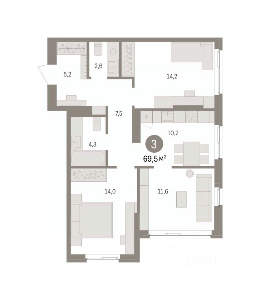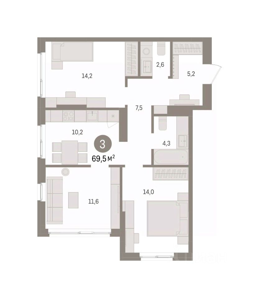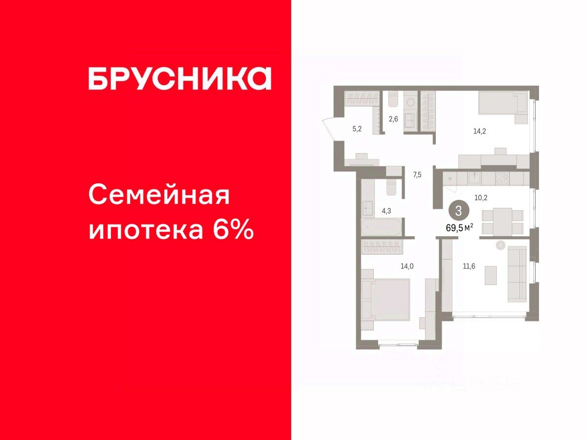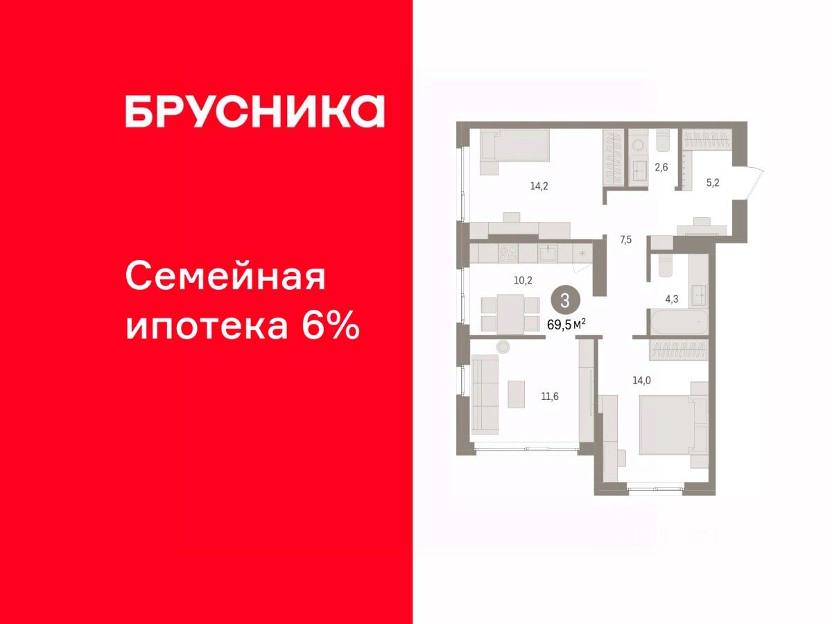 3-комн. квартира от застройщика с предчистовой отделкой в ЖК ''Квартал ''Юность'''' на 10 этаже. Общая площадь: 72.94 кв.м., жилая: 39.8 кв.м., площадь просторной кухни-гостиной: 10.3 кв.м. Квартира угловая, очень светлая, естественная вентиляция при открытии окон. В квартире одна лоджия, один совмещенный и один раздельный санузел. Высота потолков 2.7 м. Квартира находится в корпусе 1. Дом монолитный, одноподъездный, высотой 16 этажей. На этаже 8 квартир. В подъезде 1 пассажирский и 1 грузовой лифт. Окончание строительства - 4 квартал 2027 года. Оформление сделки по договору долевого участия. Квартира с кухней-гостиной и тремя спальнями в квартале ''Юность''. Особенности планировки: балкон, вид во двор, второй санузел, разнесённые спальни. квартиры в нашей базе: ЮСТ01-Ж1.10.2. Квартал ''Юность'' расположен между улицами Лодыгина и Яблочкова. Обе названы в честь русских электротехников и изобретателей, которые занимались созданием электрических ламп. Это соседство вдохновило нас на метафору, которая легла в основу концепции проекта. В физике есть термин ''суперпозиция'' — наложение нескольких воздействий, приводящее к суммарному эффекту. Именно он лучше всего отражает идею проекта Брусники. ''Юность'' — это совокупность преимуществ в одном пространстве. Узнаваемая архитектура, уютные квартиры, безопасный двор, качественное озеленение — все эти элементы незаменимы и складываются в уникальный качественный продукт. Микрорайон Крохалева сочетает в себе черты делового центра и спокойного семейного квартала. Отсюда можно быстро добраться до всех деловых, транспортных и прогулочных зон Перми. Дорога до центра займёт 10-15 минут на автомобиле. Рядом, в пешей доступности уже есть необходимая социальная и коммерческая инфраструктура. ''Юность'' состоит из двух объёмов: вытянутого корпуса с разноуровневыми секциями и 16-этажной башни. Высота секций от 9 до 11 этажей делает дом комфортным для восприятия. Каркас дома выполнен из монолитного железобетона — это надежная и долговечная конструкция, которая прослужит не менее ста лет. Отделка фасада выполнена в светлой, природной гамме: белый, серо-коричневый и теплый бежевый цвета и выразительные вставки придают дому современный облик. Балконы и террасы на верхних этажах выступают связующими звеньями, они создают плавные переходы между секциями и создают дополнительную визуальную динамику. Уникальная форма участка позволила создать единую систему благоустройства с функциональными зонами: - Внешние пространства: Встречающая площадь с арт-объектом и кафе, рекреационная зона для отдыха и игр, прогулочный бульвар с торговыми павильонами все доступно горожанам. - Закрытый двор: Разделен на зоны для тихого отдыха и активных игр. Детские площадки для разных возрастов, включая экспериментальную для малышей. Родители могут наблюдать за детьми из-под навеса. - Озеленение: До 70% двора займут деревья, кустарники и цветы, высаженные с учетом календаря цветения для круглогодичной эстетики. Проект учитывает биоразнооб