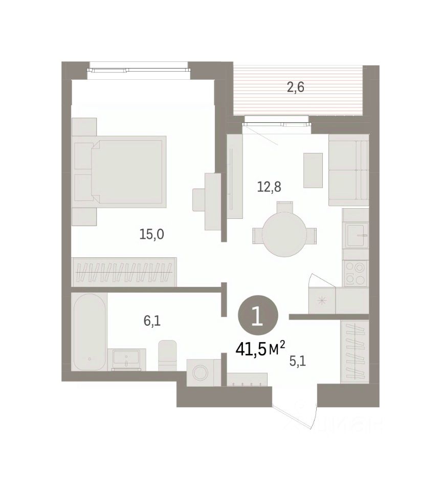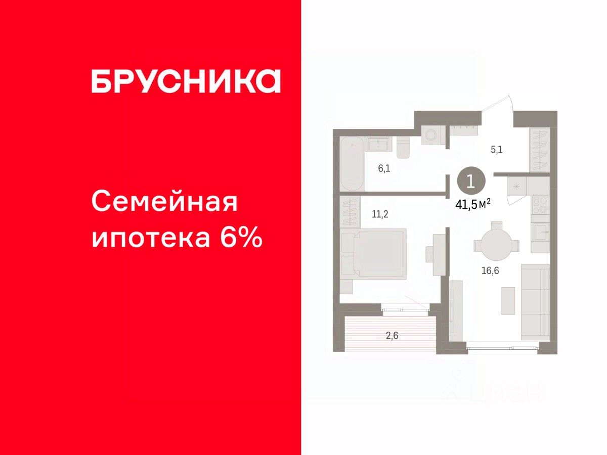 Однокомнатная квартира от застройщика с предчистовой отделкой в ЖК ''Квартал ''Юность'''' на 10 этаже. Общая площадь: 41.5 кв.м., жилая: 11.2 кв.м., площадь просторной кухни-гостиной: 16.6 кв.м. Все окна выходят на одну сторону. В квартире одна лоджия, один совмещенный санузел. Высота потолков 2.7 м. Квартира находится в корпусе 1. Дом монолитный, одноподъездный, высотой 16 этажей. На этаже 8 квартир. В подъезде 1 пассажирский и 1 грузовой лифт. Окончание строительства - 4 квартал 2027 года. Оформление сделки по договору долевого участия. Квартира с кухней-гостиной и одной спальней в квартале ''Юность''. Особенности планировки: лоджия. квартиры в нашей базе: ЮСТ01-Ж1.10.4. Квартал ''Юность'' расположен между улицами Лодыгина и Яблочкова. Обе названы в честь русских электротехников и изобретателей, которые занимались созданием электрических ламп. Это соседство вдохновило нас на метафору, которая легла в основу концепции проекта. В физике есть термин ''суперпозиция'' — наложение нескольких воздействий, приводящее к суммарному эффекту. Именно он лучше всего отражает идею проекта Брусники. ''Юность'' — это совокупность преимуществ в одном пространстве. Узнаваемая архитектура, уютные квартиры, безопасный двор, качественное озеленение — все эти элементы незаменимы и складываются в уникальный качественный продукт. Микрорайон Крохалева сочетает в себе черты делового центра и спокойного семейного квартала. Отсюда можно быстро добраться до всех деловых, транспортных и прогулочных зон Перми. Дорога до центра займёт 10-15 минут на автомобиле. Рядом, в пешей доступности уже есть необходимая социальная и коммерческая инфраструктура. ''Юность'' состоит из двух объёмов: вытянутого корпуса с разноуровневыми секциями и 16-этажной башни. Высота секций от 9 до 11 этажей делает дом комфортным для восприятия. Каркас дома выполнен из монолитного железобетона — это надежная и долговечная конструкция, которая прослужит не менее ста лет. Отделка фасада выполнена в светлой, природной гамме: белый, серо-коричневый и теплый бежевый цвета и выразительные вставки придают дому современный облик. Балконы и террасы на верхних этажах выступают связующими звеньями, они создают плавные переходы между секциями и создают дополнительную визуальную динамику. Уникальная форма участка позволила создать единую систему благоустройства с функциональными зонами: - Внешние пространства: Встречающая площадь с арт-объектом и кафе, рекреационная зона для отдыха и игр, прогулочный бульвар с торговыми павильонами все доступно горожанам. - Закрытый двор: Разделен на зоны для тихого отдыха и активных игр. Детские площадки для разных возрастов, включая экспериментальную для малышей. Родители могут наблюдать за детьми из-под навеса. - Озеленение: До 70% двора займут деревья, кустарники и цветы, высаженные с учетом календаря цветения для круглогодичной эстетики. Проект учитывает биоразнообразие, создавая среду для местной фауны. #2MDcV6