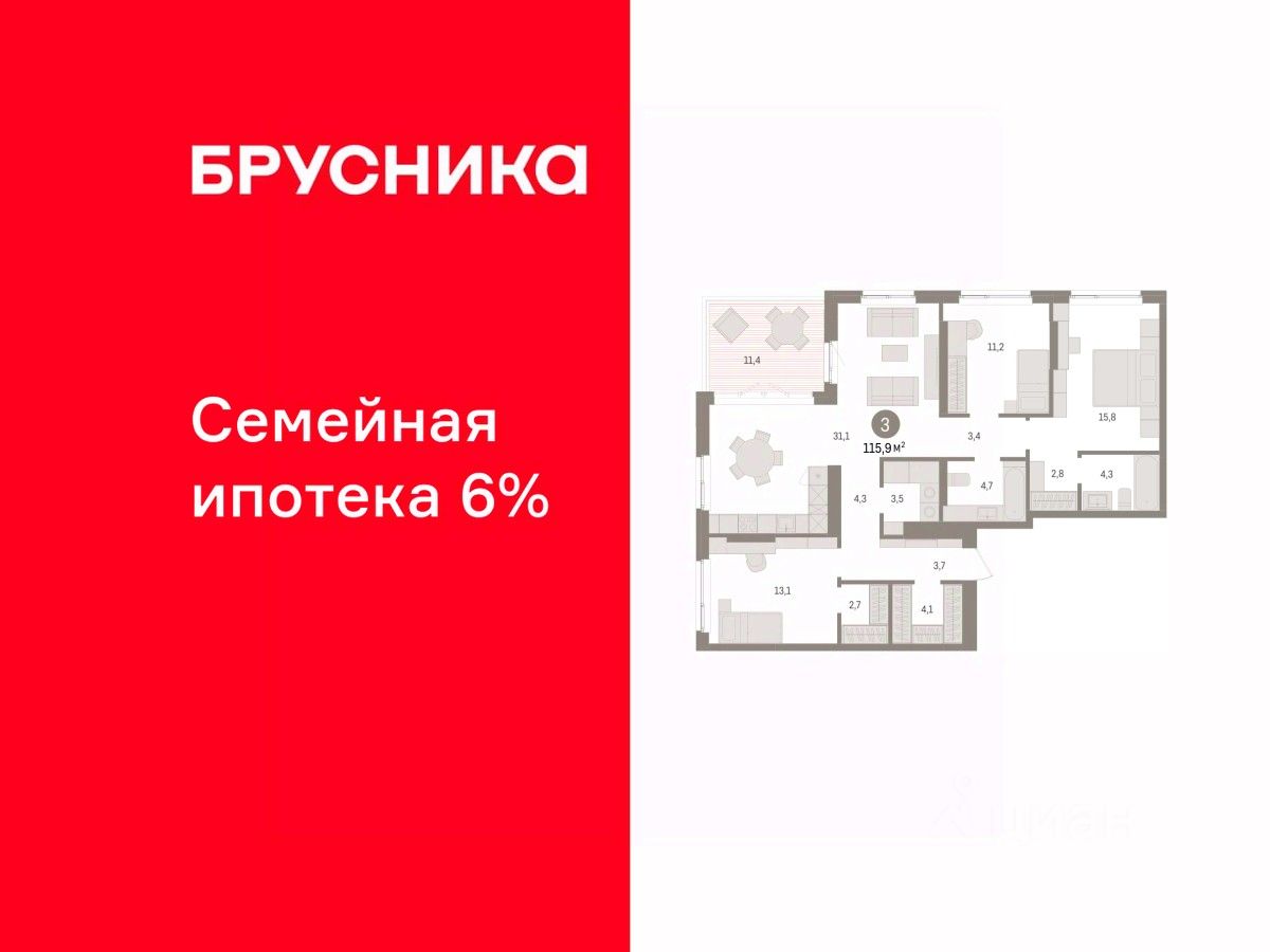 Просторная трехкомнатная квартира с предчистовой отделкой в ЖК ''Квартал ''Юность'''' на 15 этаже. Общая площадь: 115.9 кв.м. Высота потолков 2.7 м. Квартира находится в корпусе 1. Дом монолитный, одноподъездный, высотой 16 этажей. На этаже 8 квартир. В подъезде 1 пассажирский и 1 грузовой лифт. Окончание строительства - 4 квартал 2027 года. Оформление сделки по договору долевого участия. Квартира с кухней-гостиной и тремя спальнями в квартале ''Юность''. Особенности планировки: вид во двор, второй санузел, гардеробная, мастер-спальня, постирочная, разнесённые спальни, терраса на крыше. квартиры в нашей базе: ЮСТ01-Ж1.15.2. Квартал ''Юность'' расположен между улицами Лодыгина и Яблочкова. Обе названы в честь русских электротехников и изобретателей, которые занимались созданием электрических ламп. Это соседство вдохновило нас на метафору, которая легла в основу концепции проекта. В физике есть термин ''суперпозиция'' — наложение нескольких воздействий, приводящее к суммарному эффекту. Именно он лучше всего отражает идею проекта Брусники. ''Юность'' — это совокупность преимуществ в одном пространстве. Узнаваемая архитектура, уютные квартиры, безопасный двор, качественное озеленение — все эти элементы незаменимы и складываются в уникальный качественный продукт. Микрорайон Крохалева сочетает в себе черты делового центра и спокойного семейного квартала. Отсюда можно быстро добраться до всех деловых, транспортных и прогулочных зон Перми. Дорога до центра займёт 10-15 минут на автомобиле. Рядом, в пешей доступности уже есть необходимая социальная и коммерческая инфраструктура. ''Юность'' состоит из двух объёмов: вытянутого корпуса с разноуровневыми секциями и 16-этажной башни. Высота секций от 9 до 11 этажей делает дом комфортным для восприятия. Каркас дома выполнен из монолитного железобетона — это надежная и долговечная конструкция, которая прослужит не менее ста лет. Отделка фасада выполнена в светлой, природной гамме: белый, серо-коричневый и теплый бежевый цвета и выразительные вставки придают дому современный облик. Балконы и террасы на верхних этажах выступают связующими звеньями, они создают плавные переходы между секциями и создают дополнительную визуальную динамику. Уникальная форма участка позволила создать единую систему благоустройства с функциональными зонами: - Внешние пространства: Встречающая площадь с арт-объектом и кафе, рекреационная зона для отдыха и игр, прогулочный бульвар с торговыми павильонами все доступно горожанам. - Закрытый двор: Разделен на зоны для тихого отдыха и активных игр. Детские площадки для разных возрастов, включая экспериментальную для малышей. Родители могут наблюдать за детьми из-под навеса. - Озеленение: До 70% двора займут деревья, кустарники и цветы, высаженные с учетом календаря цветения для круглогодичной эстетики. Проект учитывает биоразнообразие, создавая среду для местной фауны. #zmDcMm