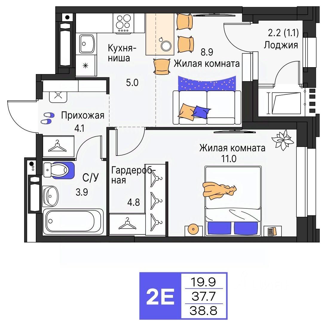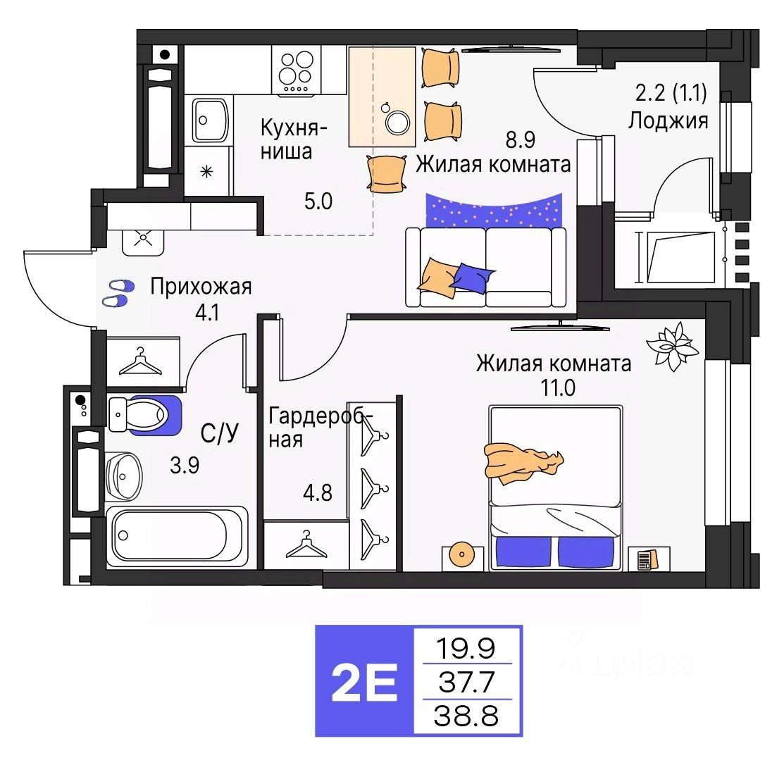 38 м² · Этаж 7 из 19