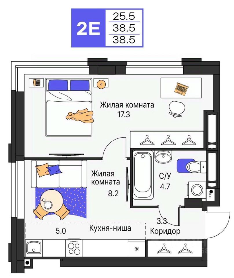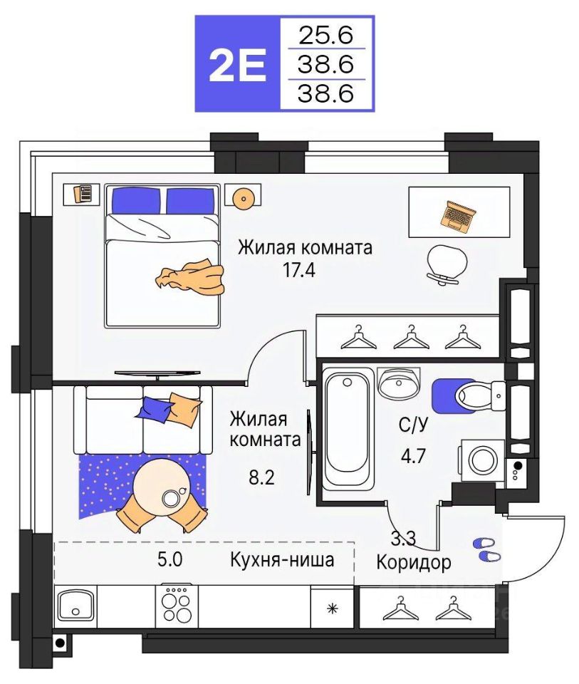 38 м² · Этаж 24 из 25