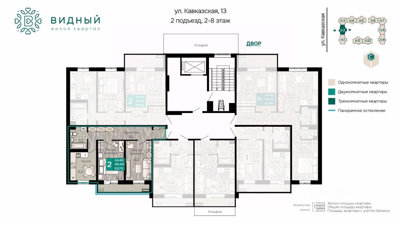 2-к, Кавказская, 13