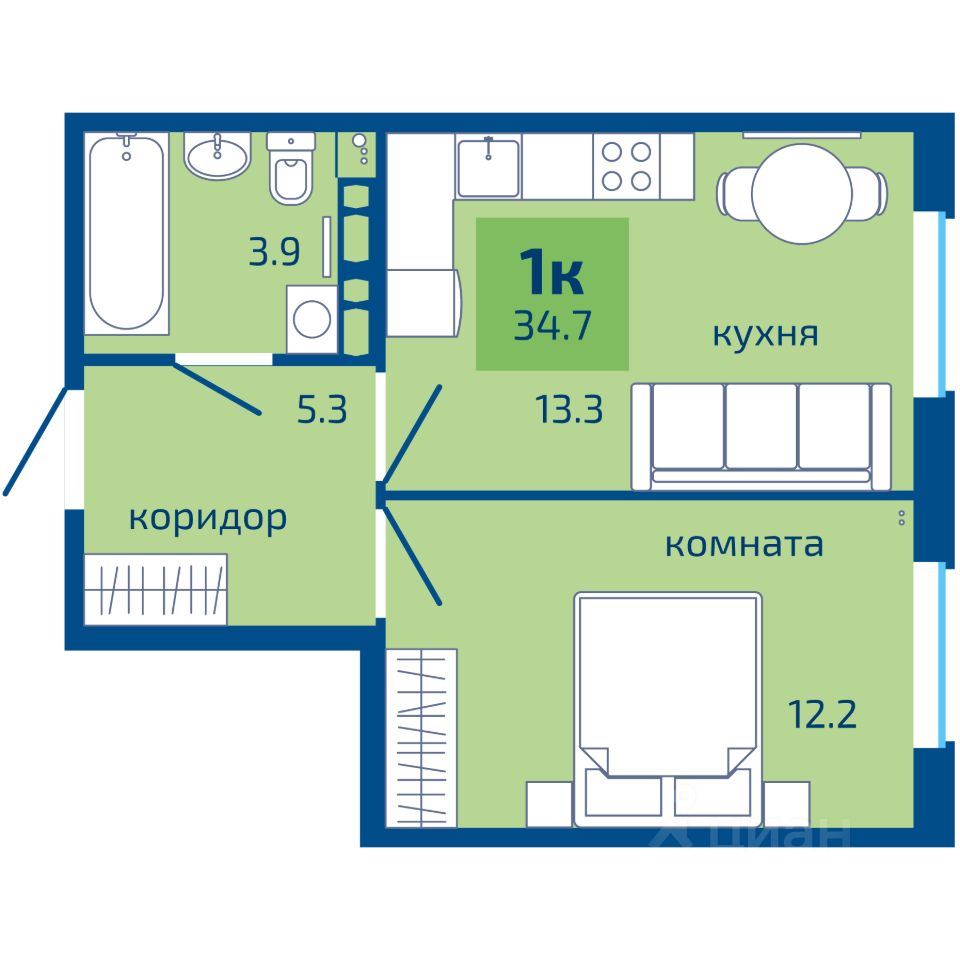 34 м² · Этаж 8 из 10
