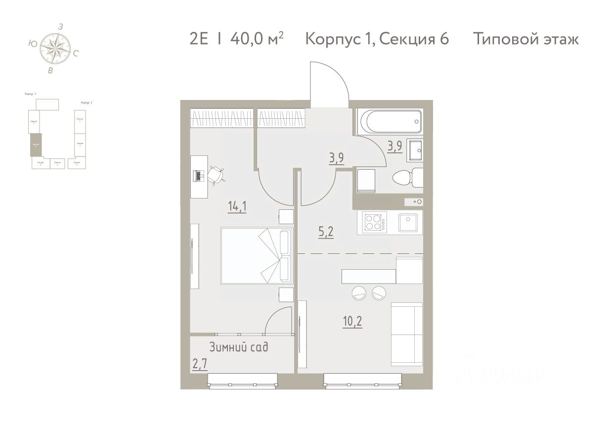40 м² · Этаж 2 из 4